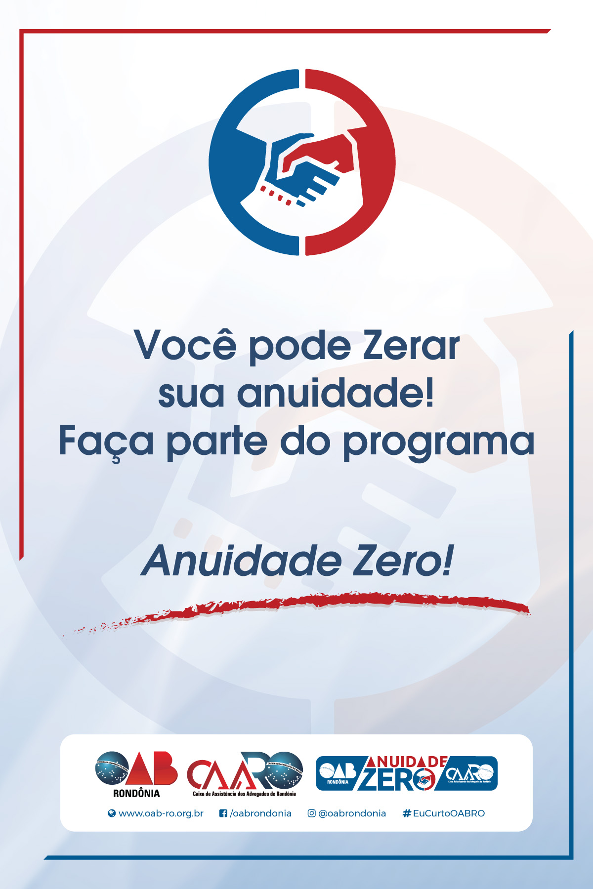 Anuidade Zero é um programa de fidelização coordenado pela Caixa de Assistência dos Advogados de Rondônia (Caaro), destinado a advogados e estagiários devidamente inscritos e regulares com o financeiro da OAB/RO, onde o acúmulo de pontos pode ser utilizado para, de forma parcial ou integral, pagar a anuidade do ano seguinte.