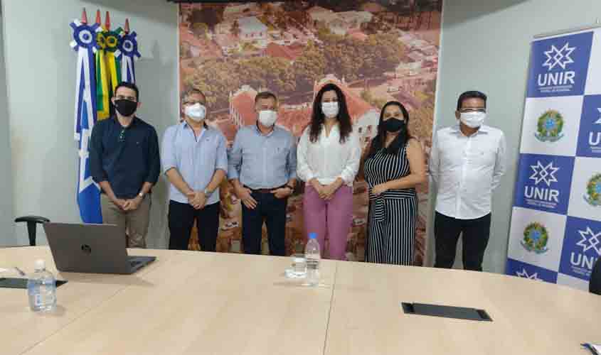 Na reunião estiveram também a pró-reitora de Extensão, Elyzania Tavares, o pró-reitor de Administração, Charles Dam Souza, e o vice-reitor da UNIR, professor Juliano Cedaro. Entre os temas abordados está a conclusão de obras tanto no campus de Porto Velho, em especial o restaurante universitário e o teatro da UNIR, como obras em fase de conclusão nos campi do interior, a exemplo de Rolim de Moura, Ji-Paraná e Cacoal. “São obras que terão impacto importante para os alunos e para a formação profissional deles, e estamos focados em garantir as suas conclusões”, garantiu o deputado Lúcio Mosquini.
