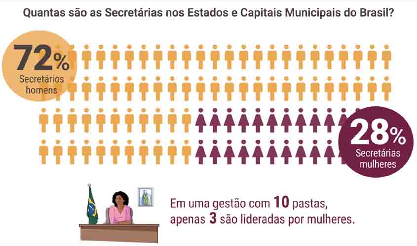 Em todo o país, apenas uma capital e três estados alcançaram paridade de gênero em cargos de liderança; a maioria dos executivos ainda tem menos de 30% de participação feminina em seus secretariados