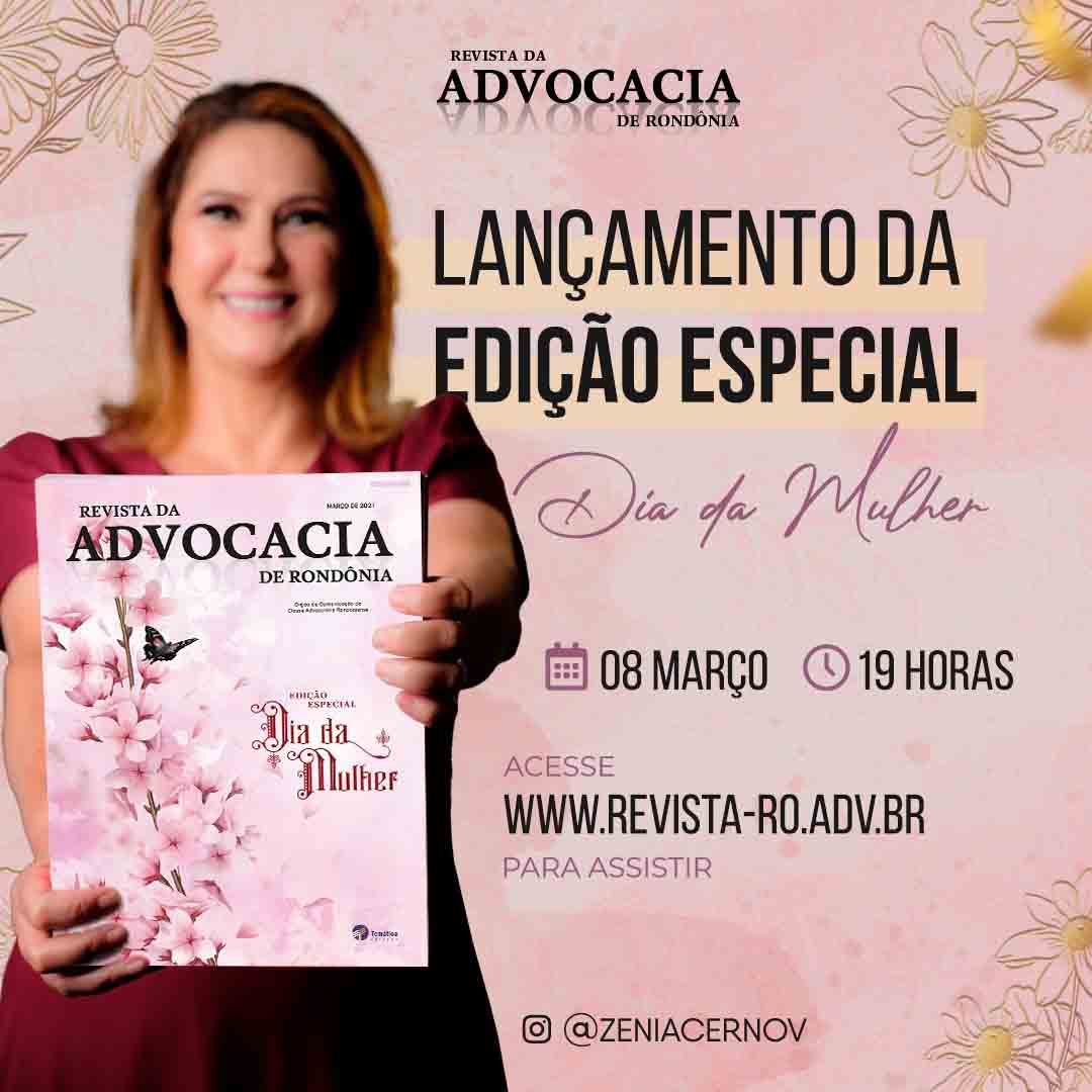 O Dia Internacional da Mulher (8 de março) será comemorado pela Revista da Advocacia de Rondônia com o lançamento de uma edição especial. Contendo 25 artigos assinados por Advogadas do Estado, atuantes nos mais diversos ramos do direito, a Revista abordará exclusivamente temos femininos, como Lei Maria da Penha, paridade nos cargos que integram o sistema OAB, prerrogativas da mulher Advogada, violência obstétrica, sobrecarga dos papéis femininos durante a pandemia e direitos das mulheres encarceradas, entre outros grandes temas relevantes que abordam o papel da mulher nos espaços de poder.