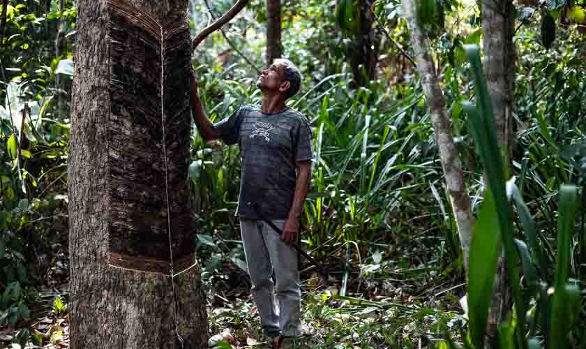 Seringueiro da RESEX Cautário, RO/ Crédito: Fotos: José Medeiros, no âmbito do projeto Pacto da Floresta, executado pelo Pacto das Águas e financiado pelo Fundo Amazônia / BNDES.