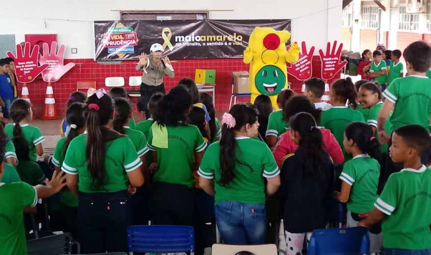 Alunos da escola Joaquim Vicente recebem orientações para prática de um trânsito mais seguro