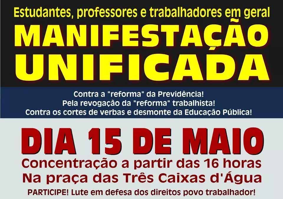 Participam da manifestação unificada contra o desmonte da educação sindicatos e movimentos sociais que também vão protestar contra a reforma da Previdência.