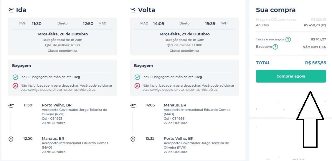 Com menos voos por causa da pandemia do novo coronavírus, a única forma de encontrar passagens aéreas promocionais é garantindo a compra dos bilhetes com antecedência. Para você não passar horas procurando os menores preços, o Tudo Rondônia selecionou uma lista com preços incríveis nos voos de Porto Velho e de Rio Branco. Da capital de Rondônia para Manaus, em voo direto, você viaja pagando pela ida e a volta o valor de R$ 563,55, valor com a taxas incluídas. (Veja detalhes na imagem acima).