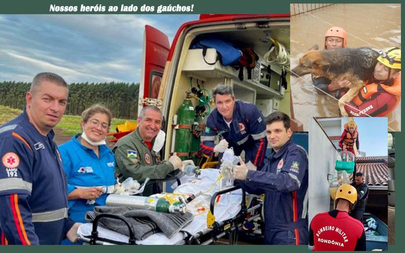 NO RS, NOSSOS BOMBEIROS SALVAM VIDAS, RETIRAM PESSOAS E ANIMAIS ATINGIDOS PELA TRAGÉDIA E DEVOLVEM RONDONIENSES PARA CASA