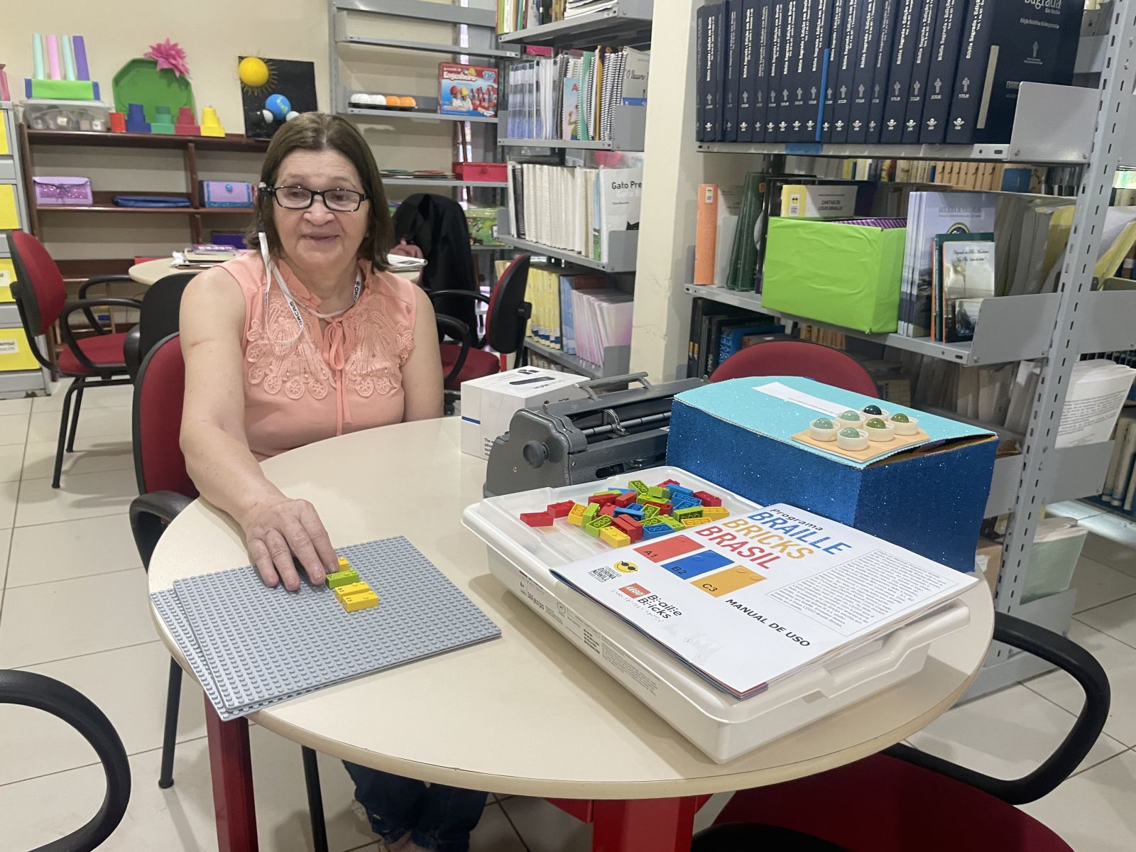 “Há oito anos, com 57 anos de idade, tive que buscar forças para me superar e sair da depressão causada pela perda da visão, pois as escolas não quiseram me aproveitar nesse processo de inclusão no mercado de trabalho, foi uma época muito difícil, mas graças a um amigo que me trouxe aqui na biblioteca, pude aprender o braile e mais tarde, fui convidada a trabalhar ensinando outras pessoas a superar seus desafios, assim como eu”, lembra emocionada.
