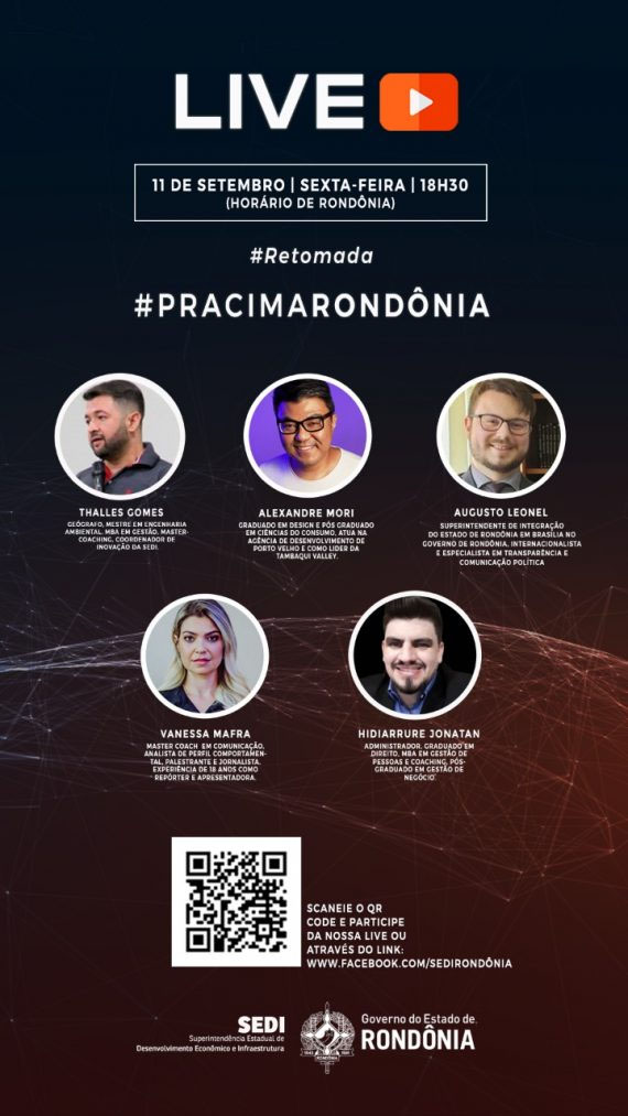 A Superintendência Estadual de Desenvolvimento Econômico e Infraestrutura (Sedi) do Governo de Rondônia, realizará uma live nesta sexta-feira (11), às 18h30, para falar sobre a plataforma #Pracima Rondônia. A live será transmitida por meio do Facebook da Superintendência.