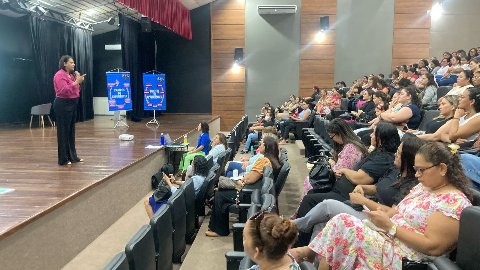 Na última sexta-feira (4), a formação para os profissionais da educação infantil foi concluída, após três dias de intensas atividades realizadas no teatro Banzeiros, que envolveram educadores de creches, pré-escolas e salas de recursos do município.