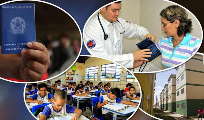 . no campo trabalhista, a promoção constante do fator trabalho no processo produtivo, através de uma política que valorize o emprego, o salário mínimo e as relações trabalhistas;