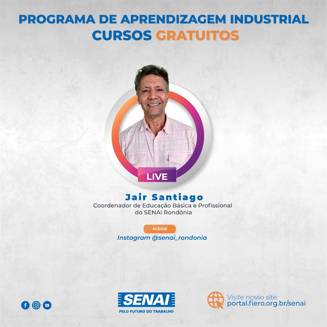 O objetivo principal é contribuir para que a indústria local continue se fortalecendo e o SENAI fazendo sua parte quanto à qualificação de mão de obra. Para facilitar o acesso aos cursos, as aulas ocorrem na forma presencial e Ensino à Distância (EAD). Jair Coelho explicou na live que boa parte das aulas são na modalidade EAD, atingindo assim, alunos de qualquer município, sendo a parte prática dos cursos, presencialmente nas unidades do SENAI de Porto Velho, Ariquemes, Ji-Paraná, Jaru, Cacoal, Rolim de Moura e Vilhena. Outro ponto importante ressaltado pelo coordenador de educação, é quanto à importância da leitura do edital, pois nele constam todos os requisitos, prazos e documentação necessária para a efetivação da inscrição do candidato.