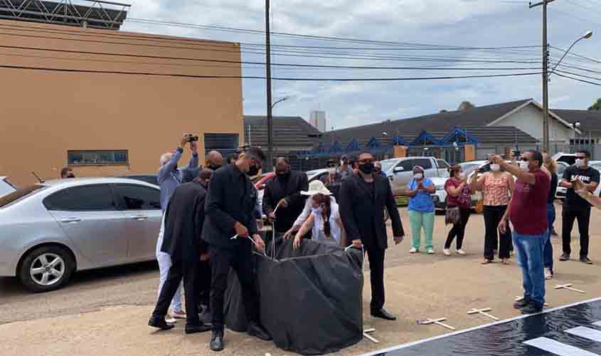 Já na última sexta-feira (04), servidores fizeram o enterro simbólico da saúde, denunciando as péssimas condições de trabalho. O ato começou próximo ao Hospital de Base e seguiu até o prédio da Secretaria de Estado da Saúde (Sesau), no Centro Político-Administrativo do Governo de Rondônia.