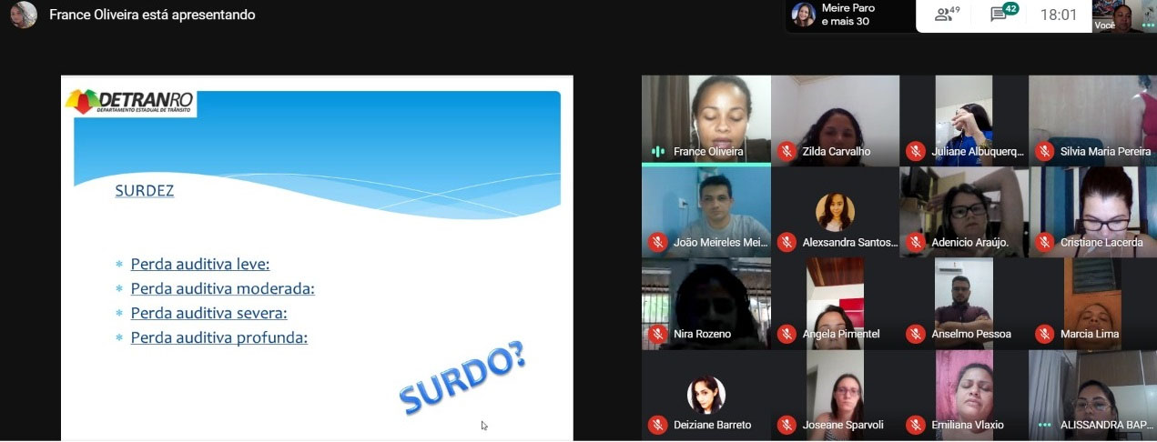 O Departamento Estadual de Trânsito Rondônia (Detran-RO) está oferecendo curso de formação em Língua Brasileira de Sinais (Libras) para 200 servidores. A primeira turma, composta por 100 colaboradores, inciou nesta segunda-feira (14) e as atividades serão oferecidas de forma remota, com aulas ao vivo pela plataforma Moodle.