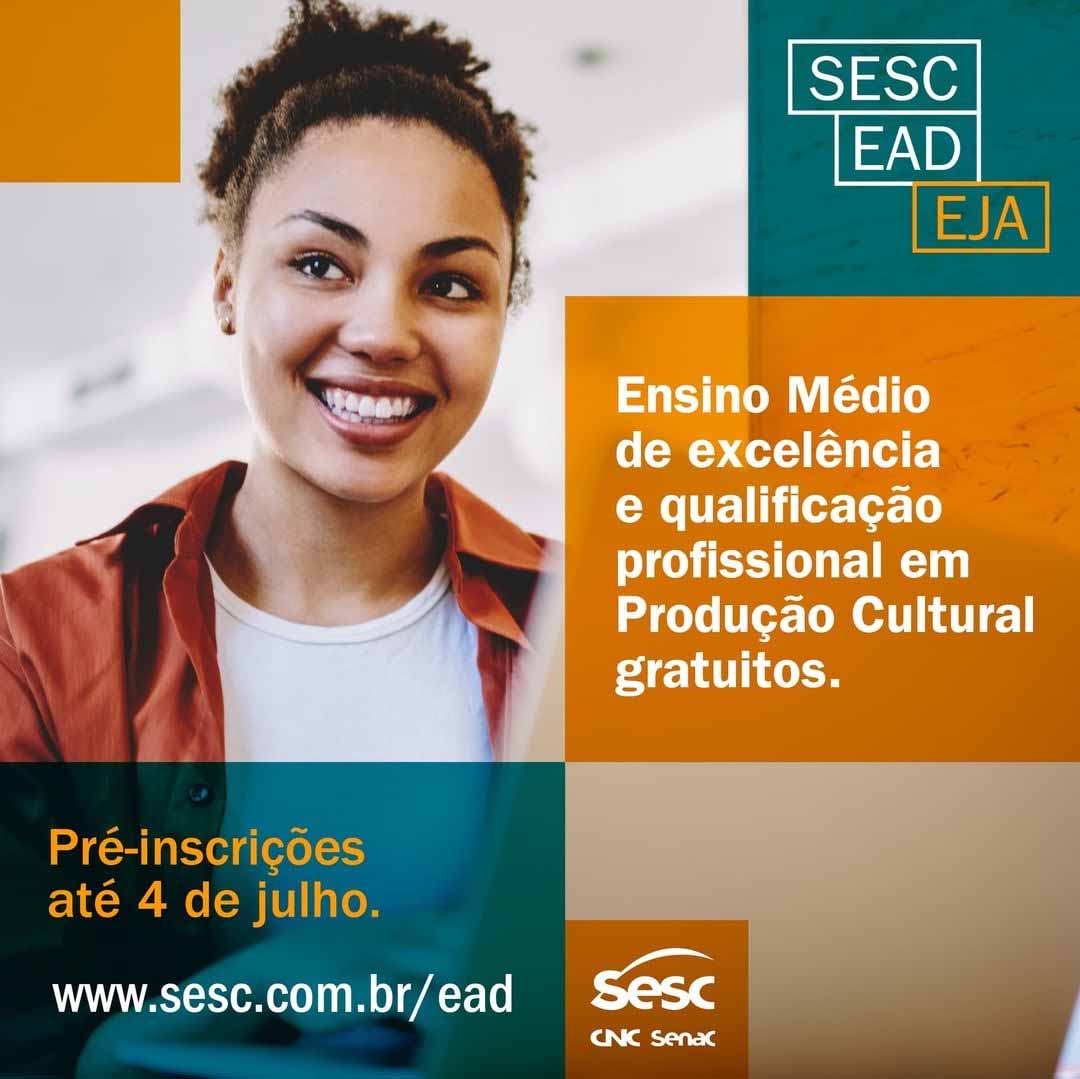 Quem deseja concluir o Ensino Médio e obter qualificação profissional em produção cultural gratuitamente poderá se inscrever, até o dia 04 de julho, para concorrer a uma vaga no Sesc EAD EJA (Educação a Distância para Jovens e Adultos). Essa é a segunda turma que a instituição abre neste ano, como forma de incentivar a retomada dos estudos para o público a partir de 18 anos que não concluiu o Ensino Médio e ainda fomentar o acesso ao mercado de trabalho. Ao final do curso, os alunos receberão certificado de conclusão do Ensino Médio com qualificação profissional.