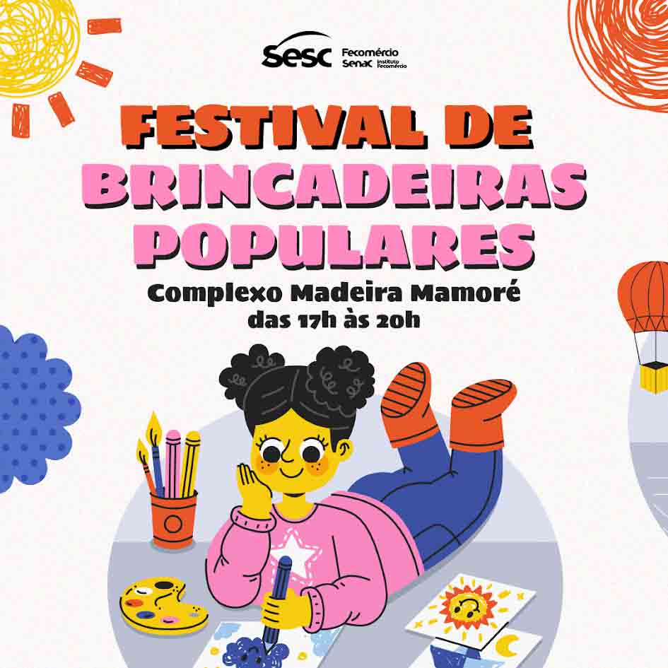 O Serviço Social do Comércio – Sesc realiza a partir do dia 28 de julho uma extensa programação gratuita no Complexo Madeira-Mamoré. A coordenação de recreação leva brincadeiras populares e grandes apresentações musicais para toda família.