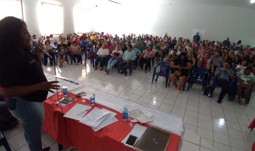 Inicialmente a presidente do Sintero, Lionilda Simão, agradeceu pela presença de todos e comentou as dificuldades que serão enfrentadas pelos trabalhadores, caso essa proposta seja efetivada, por conta da possível retirada de direitos. Por isso, a presidente ressaltou a necessidade de se debater sobre o tema e levar os esclarecimentos à classe.
