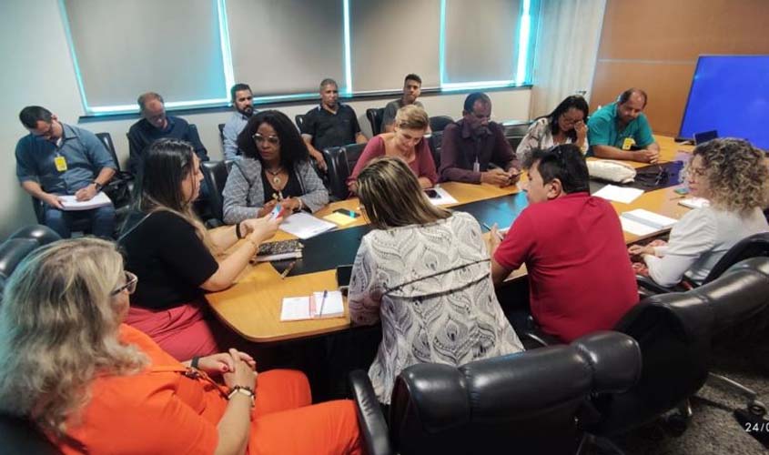 A Diretoria Executiva do Sintero acompanhada de representantes de todas as Diretorias Regionais teve nesta terça-feira, dia 24/01/2023, a primeira reunião do ano com a secretária de Estado da Educação, Ana Pacini, e com sua equipe técnica, com a finalidade de discutir a pauta dos trabalhadores em educação, que trata do plano de valorização da categoria, aprovado no início da atual gestão do Sintero e atualizado a cada ano durante o mandato.