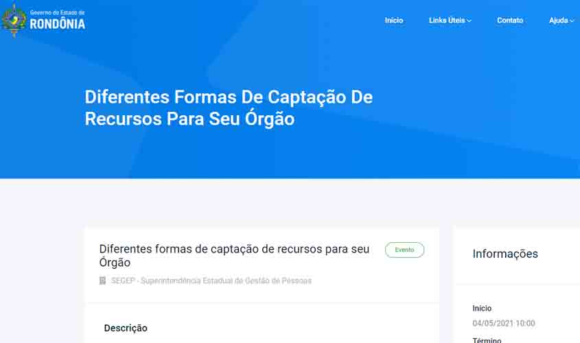 Escola de Governo abre vagas para curso sobre captação de recursos para servidores estaduais e municipais de Rondônia