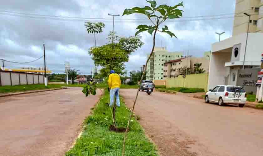 Canteiros centrais de Porto Velho ganham plantio de mudas de árvores