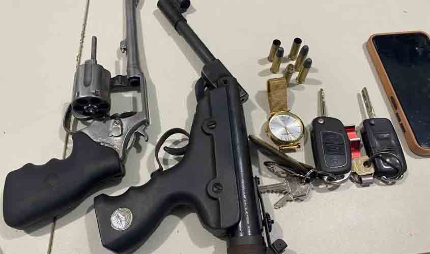 A Polícia Militar recebeu a denúncia e, através de investigação, descobriu que os veículos foram vistos seguindo pela BR-364 em direção a Jaci-Paraná. Em uma ação rápida, os militares interceptaram os veículos e prenderam os suspeitos, que estavam de posse de um revólver calibre .38 municiado e uma arma de pressão adaptada para balas calibre .22.