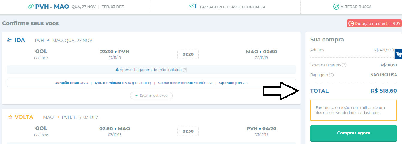 As companhias Gol, LATAM e Azul lançaram neste sábado uma promoção de passagens aéreas para vários destinos nacionais. Nos voos diretos da Gol de Porto Velho para Manaus é possível garantir os bilhetes de ida e volta por apenas R$ 518. (veja na imagem acima). Na promoção da Azul a nossa equipe encontrou passagens de ida e volta da capital do estado para Cuiabá por R$ 833,34. Esse voo entre as duas capitais é sem escala.