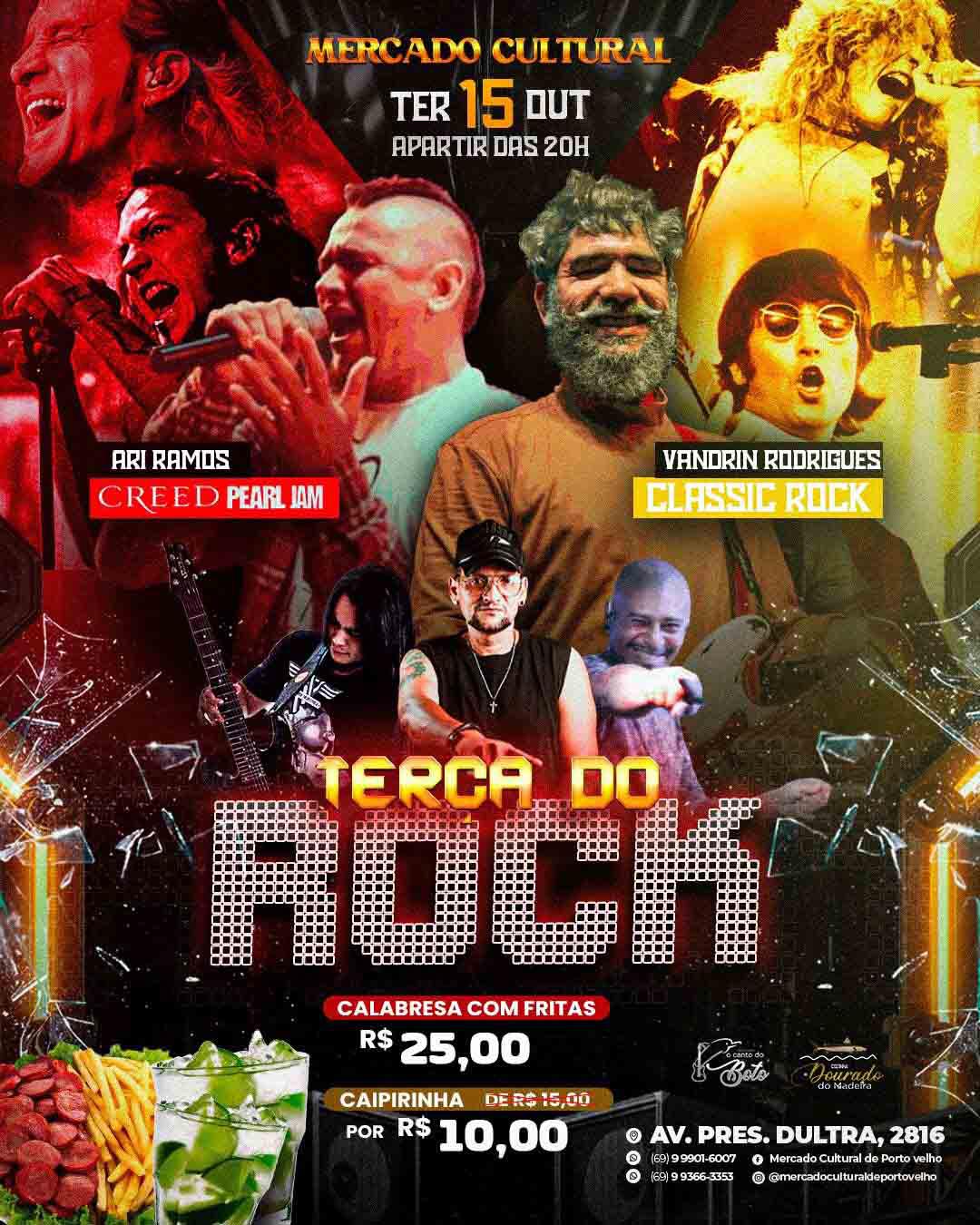 A noite, a partir das 19h40, terá shows com as bandas de rock Ari Ramos, com especial Creed Pearl Jam, na sequência, Vandrin Rodrigues mandando os clássicos do rock.