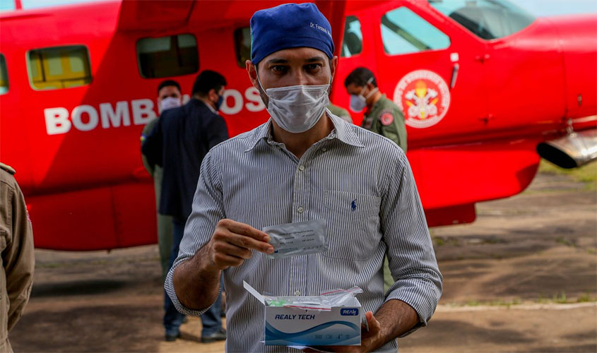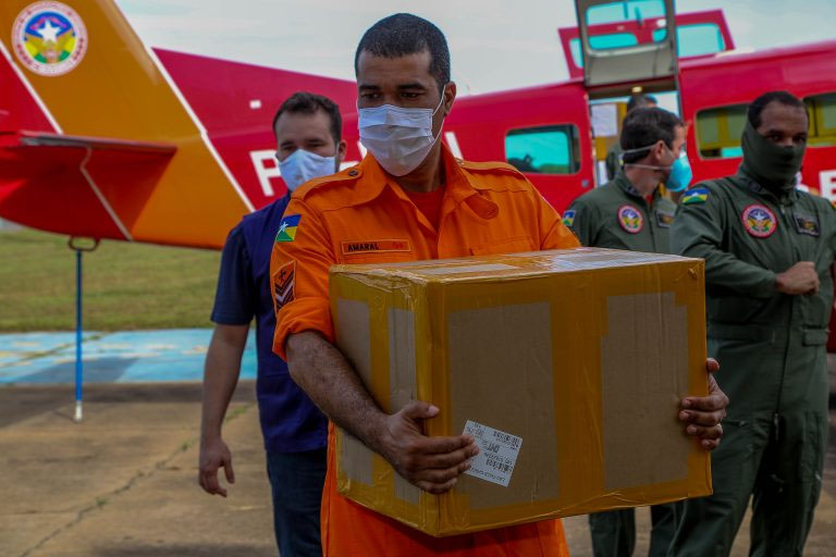 A Defesa Civil, vinculada ao Corpo de Bombeiros Militar de Rondônia, também teve um papel considerado essencial para dar celeridade à chegada dos testes rápidos que foram fabricados na China e comprados de uma empresa de São Paulo. Militares da Defesa Civil foram com a aeronave do governo até São Paulo conferir e transportar a carga. ‘‘São verdadeiros guerreiros que foram para resolver os embaraços em relação ao alfandegamento e junto com a Anvisa’’, disse o secretário. Cumprindo todos os parâmetros legais da Receita Federal e trâmites de registro dos produtos, os testes rápidos chegaram em solo rondoniense.