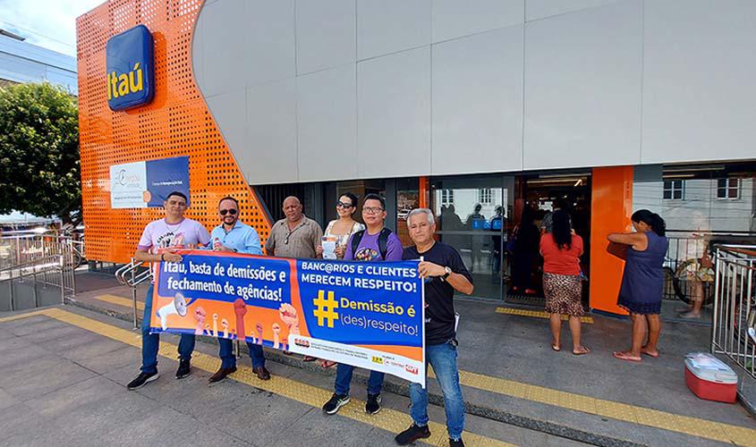 Bancários de Rondônia protestam contra demissões do Itaú, o banco que mais lucra no país