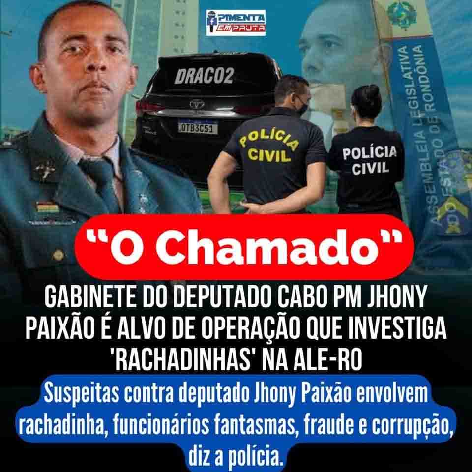 A Assembleia Legislativa do Estado de Rondônia foi manchete nacional mais uma vez por causa de seus parlamentares. Desta vez, o deputado estadual Jhony Paixão foi acusado, talvez injustamente, de fazer “coisas erradas” na política. A Operação “O Chamado” da Polícia Civil acusa o nobre político bolsonarista de fraude, corrupção, de fazer rachadinhas e de ter funcionários fantasmas em seu gabinete. As investigações policiais apuraram que até o momento o valor desviado, via emendas, soma mais de um milhão de reais e que pode chegar a uma cifra muito maior. Um ultraje, uma injustiça, algo surreal em Rondônia e na ALE/RO, pois mesmo que “a unanimidade seja burra”, qualquer bolsonarista é honesto. E um deputado estadual de Rondônia jamais iria se envolver em falcatruas, roubos ou desvios de dinheiro público. Só pode ser um engano.
