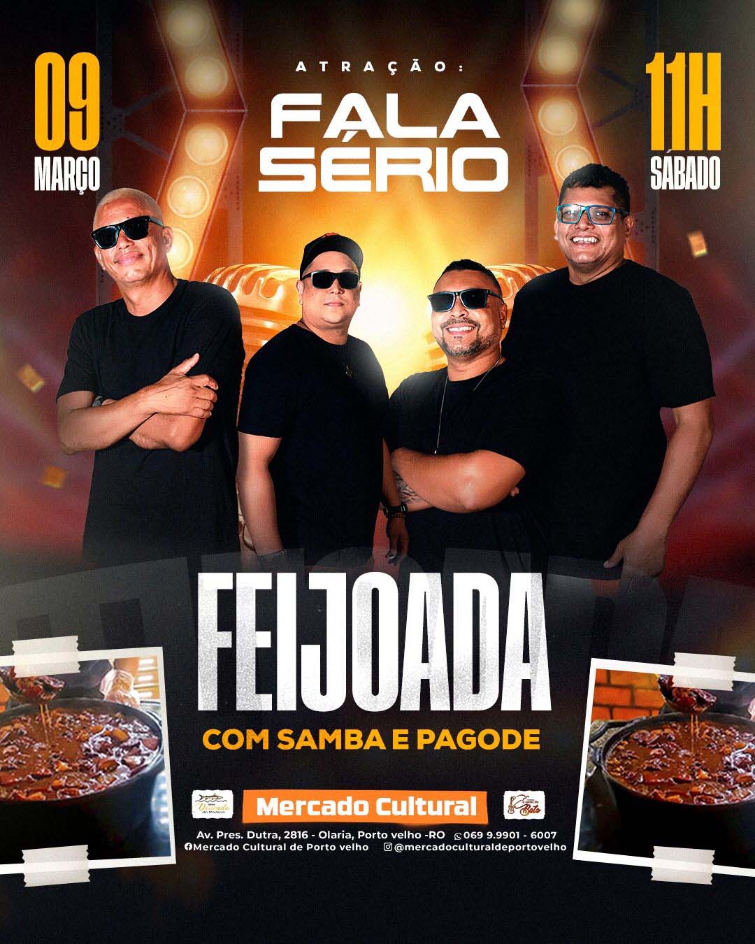 O empresário disse que a primeira atração do dia, vai ser a partir das 12h, com show do grupo Fala Sério durante o evento gastronômico 'Feijoada Com Samba e Pagode'