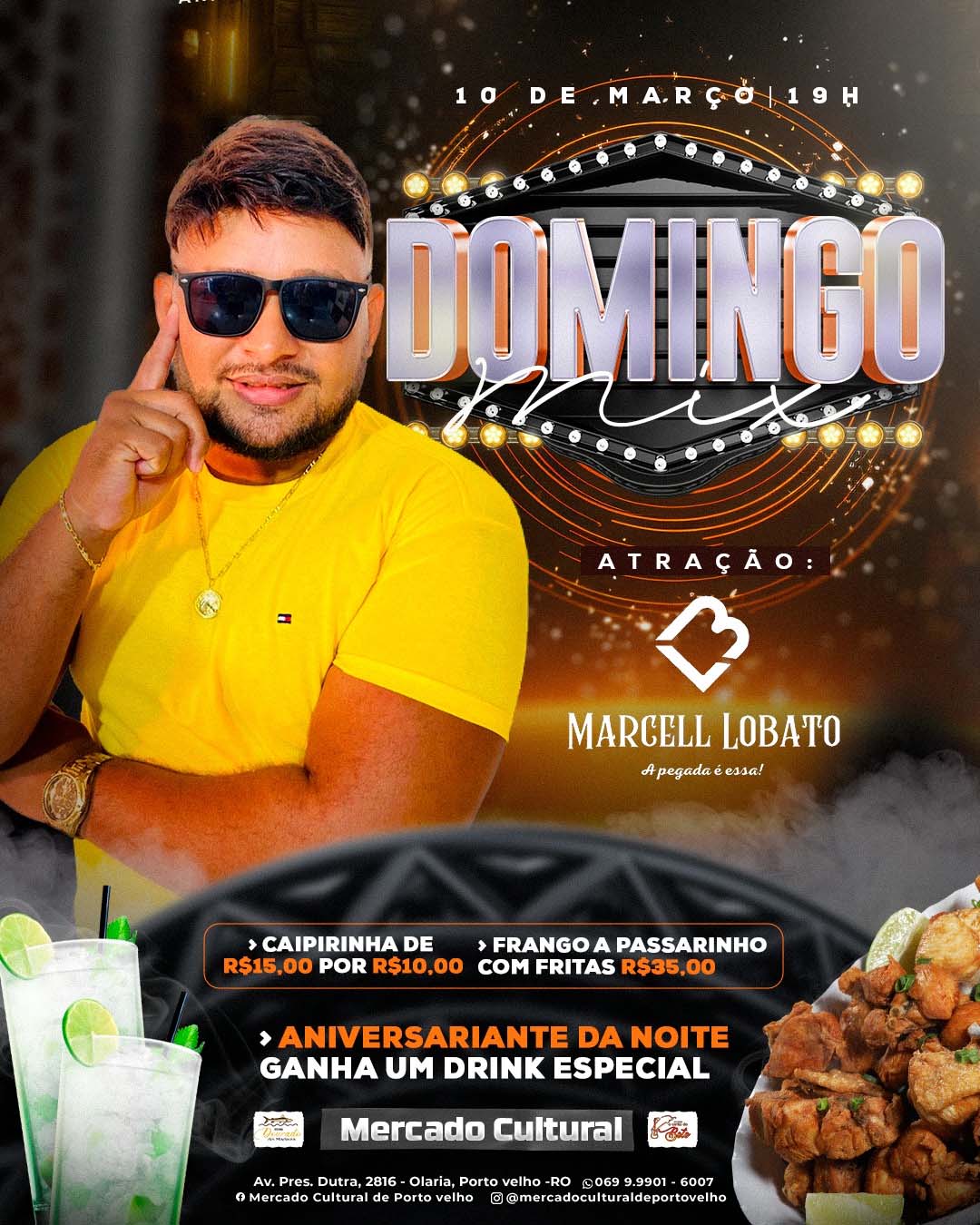 Às 16h, show do grupo Pagode Resenha, na sequência, as 19h30, show de Marcell Lobato.