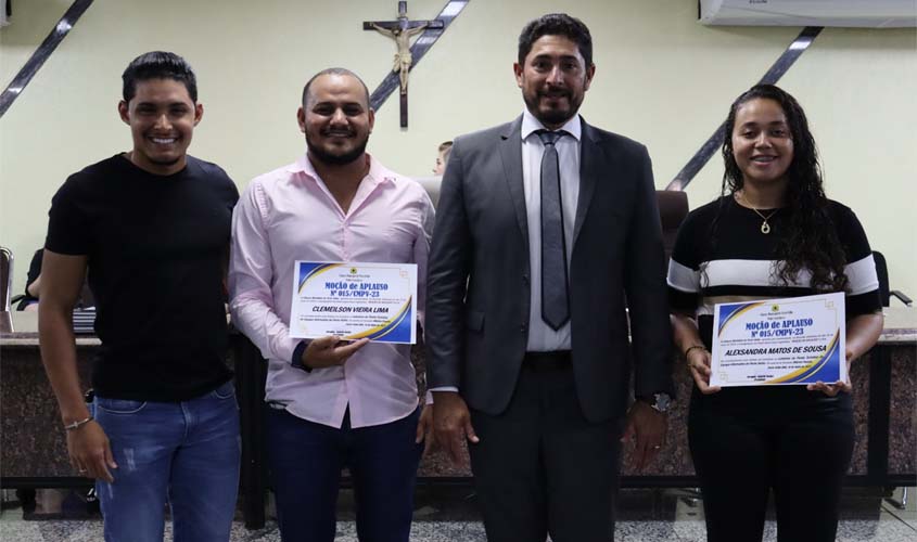 Clemeilson Vieira Lima e Alexandra Matos de Sousa receberam Moção de Aplausos por sua iniciativa generosa de investir recursos próprios na revitalização dos letreiros turísticos