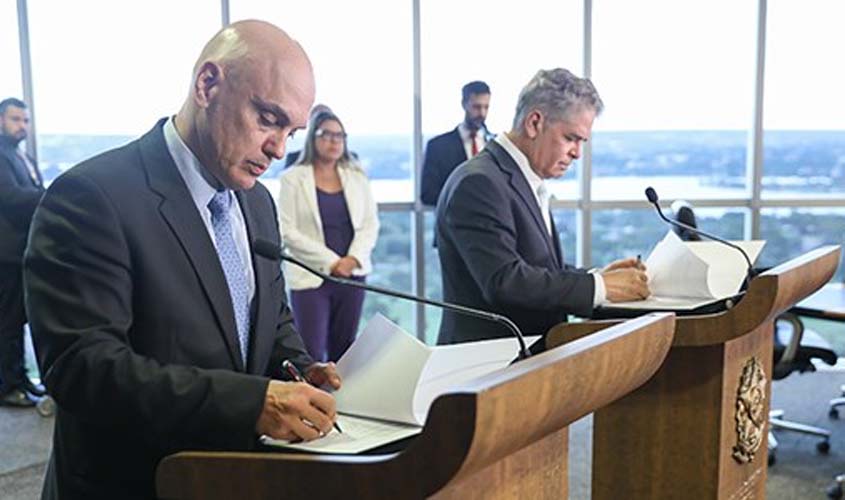 O Tribunal Superior Eleitoral (TSE) e o Ministério Público do Trabalho (MPT) celebraram nesta terça-feira (16) um acordo de cooperação técnica para combater as práticas de assédio eleitoral no ambiente de trabalho. O documento foi assinado pelo presidente do TSE, ministro Alexandre de Moraes, e pelo procurador-geral do Trabalho, José de Lima Ramos Pereira. Também participaram da cerimônia o corregedor-geral eleitoral, ministro Benedito Gonçalves, e os procuradores Rafael Dias Marques e Ana Cláudia Monteiro.