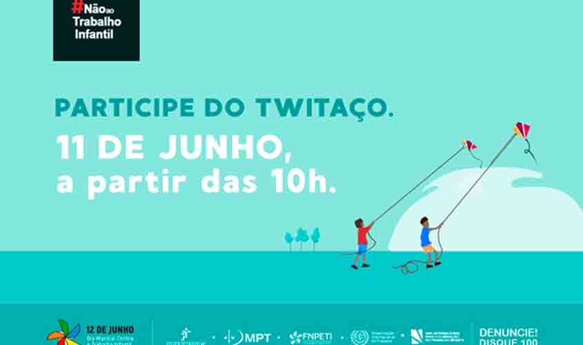 O Twitaço #NãoaoTrabalhoInfantil será no dia 11 de junho, das 10h às 13h, e visa sensibilizar os usuários da rede social para a importância de identificar e combater essa forma de abuso.