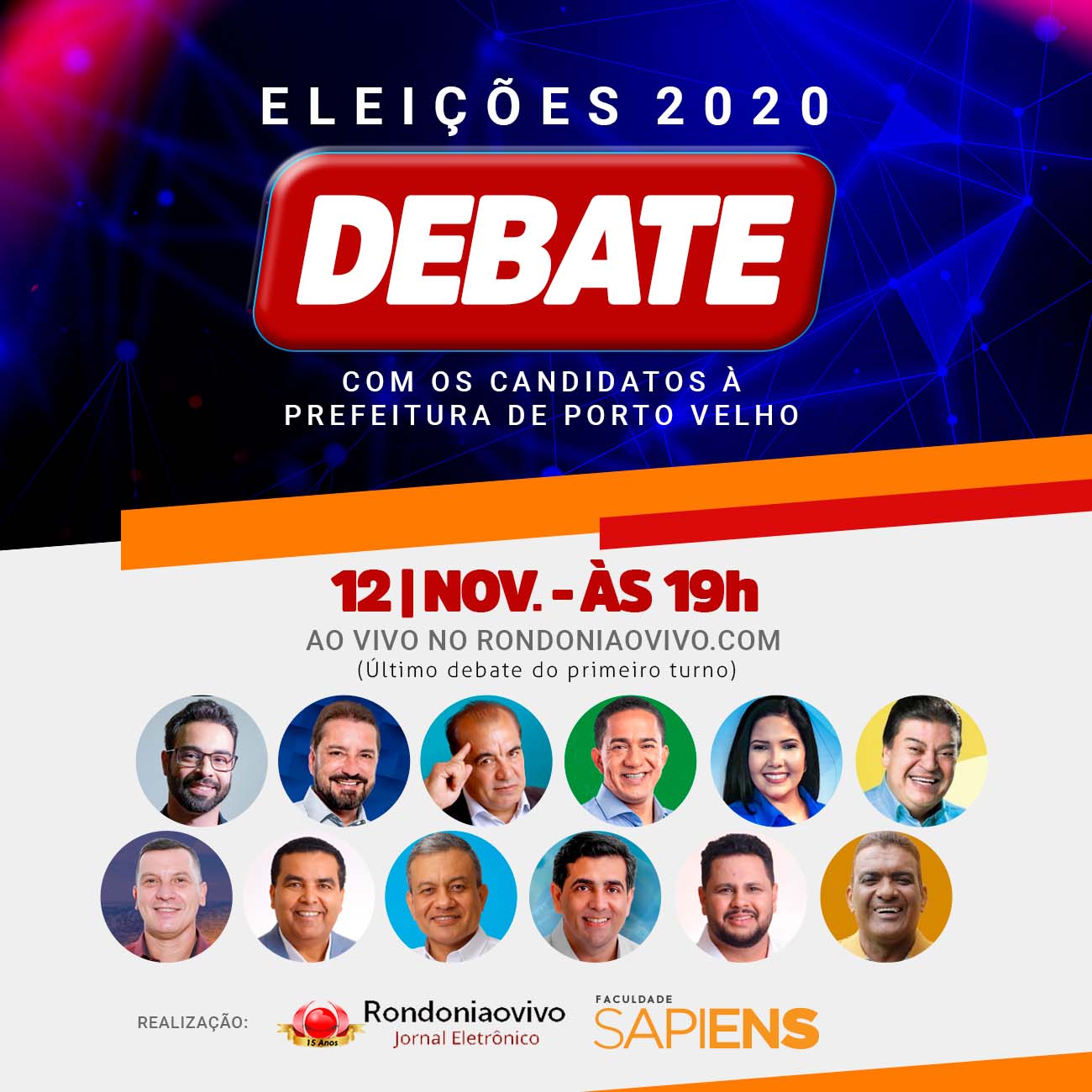 No dia 12 de novembro o site Rondoniaovivo e a Faculdade Sapiens realizarão o último debate antes do primeiro turno das eleições municipais de Porto Velho com doze candidatos à prefeitura da capital. O evento terá transmissão em tempo real pelo site www.rondoniaovivo.com a partir das 19h e será a última oportunidade dos eleitores conhecerem as propostas e fazerem uma votação consciente dia 15 de novembro.