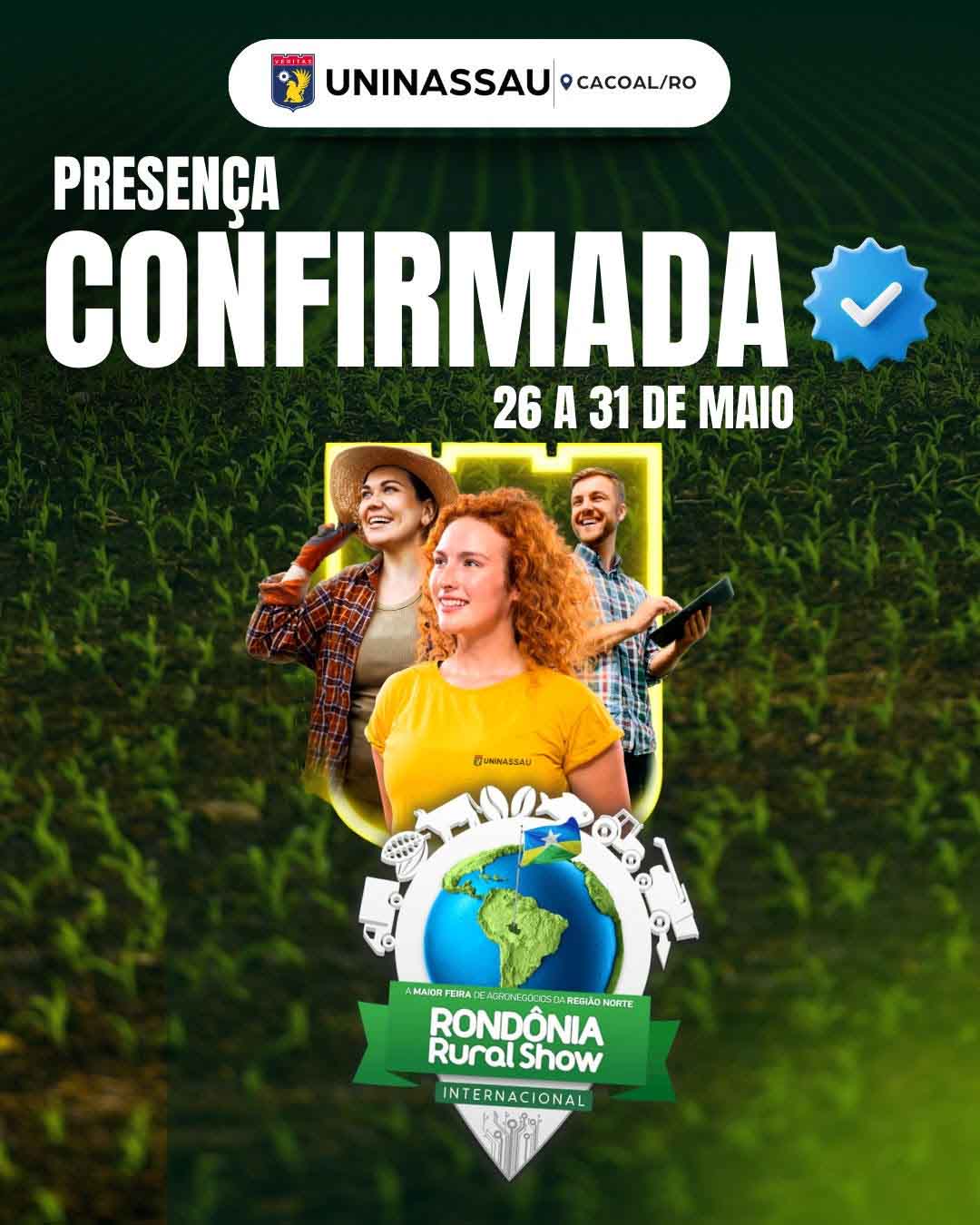 A UNINASSAU Cacoal participa da 12ª edição da Rondônia Rural Show Internacional, uma das maiores feiras de agronegócio da Região Norte do Brasil, que acontece de 26 a 31 de maio, no município de Ji-Paraná. O evento é um ponto de encontro anual para agricultores, empresas do setor, estudantes e público em geral, promovendo o desenvolvimento rural e impulsionando o agronegócio com tecnologia, inovação e oportunidades de negócios.