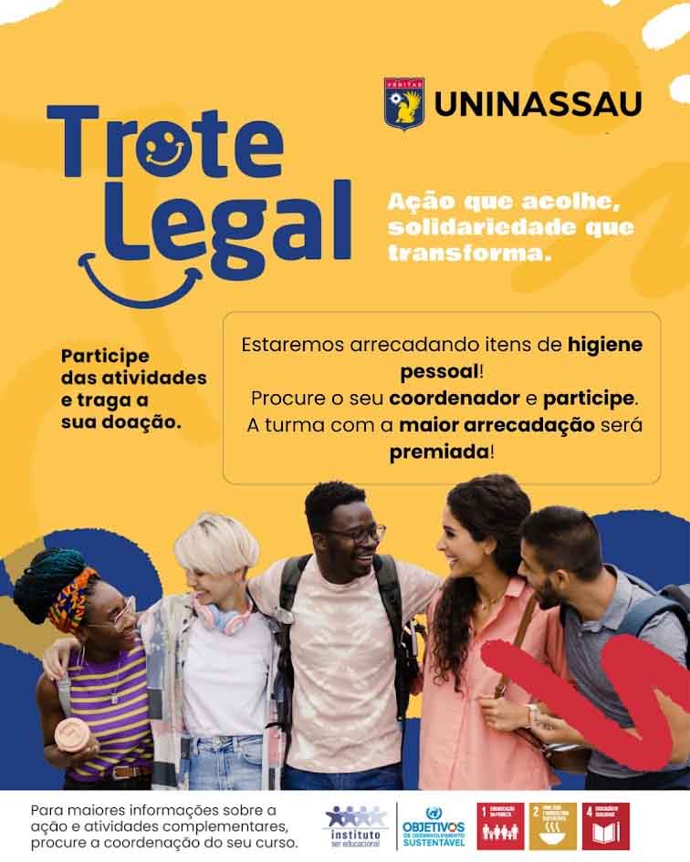 A UNINASSAU Cacoal iniciou mais uma edição do Trote Legal, ação solidária que já é tradição na Instituição de Ensino Superior. A cada semestre, essa iniciativa mobiliza alunos, professores, colaboradores e comunidade em prol de uma causa social. Neste ano, a campanha tem como objetivo arrecadar produtos de higiene pessoal. Os itens serão doados a Casa de Acolhida São Camilo, responsável por desempenhar um papel fundamental no cuidado e acolhimento da população idosa do município.