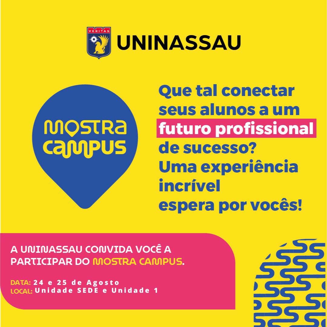 Nos dias 24 e 25 de agosto, a UNINASSAU Cacoal realiza a 2ª edição do Mostra Campus. O evento acontece das 8h às 22h, nas duas unidades do Centro Universitário. A maior feira estudantil do interior de Rondônia tem o objetivo de apresentar os cursos da Instituição para alunos do 3º ano do Ensino Médio de escolas públicas e privadas de Cacoal e região.