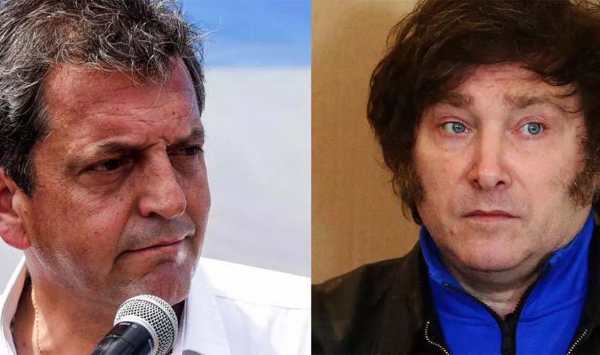 Sergio Massa (à esq.) e Javier Milei (Foto: REUTERS)