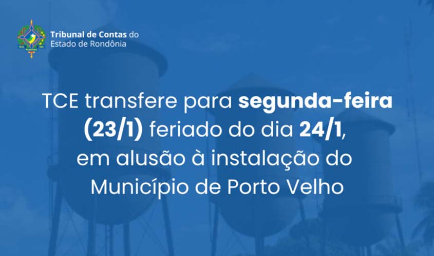 TCE transfere para segunda-feira (23/1) feriado do dia 24/1, em alusão à instalação do Município de Porto Velho