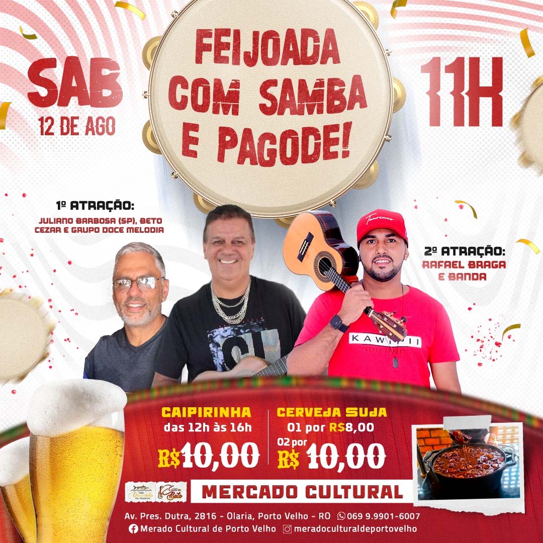Depois do Café Regional, que começa às 7h, tem a tradicional "Feijoada com Samba e Pagode", às 11h, com uma atração de São Paulo, Julio Barbosa, juntamente com o compositor, cantor e sambista Beto Cezar e o grupo Doce Melodia abrindo o evento gastronômico, na sequência, às 14h, o melhor do pagode com a banda do Rafael Braga.