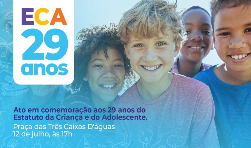 No dia 13 de julho de 2019, a Lei 8069/90 - Estatuto da Criança e do Adolescente completa 29 anos. Para celebrar essa grande conquista, a Vara Infracional e de Execução de Medidas Socioeducativas em conjunto com a Vara de Proteção à Infância e Juventude e Ministério Público, em articulação com diversas entidades governamentais e não governamentais, realizará um ato na Praça das Três Caixas D'Água, no próximo dia 12, sexta feira, às 17 horas. O evento tem por objetivo reafirmar as garantias preconizadas pela Lei e sensibilizar a comunidade e o poder público para a necessidade de sua plena efetivação.