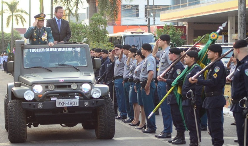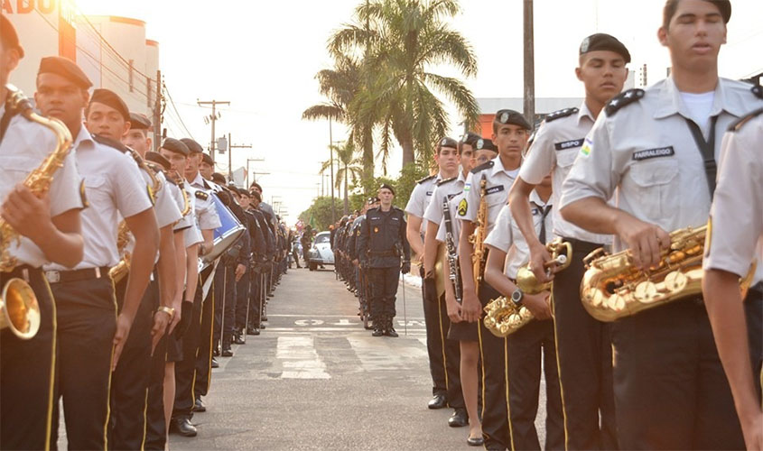 Com início às 17h, o desfile foi aberto pela banda da Guarda Mirim e contou também com outras duas fanfarras, das escolas Paulo Assis Ribeiro (de Colorado do Oeste) e Almirante Tamandaré, antiga Cristo Rei (a única municipal cívico-militar do Norte do País). Na sequência, vieram, nesta ordem: Polícia Militar, Tiro de Guerra, Aeronáutica, Agentes Penitenciários, Polícia Federal, Agentes Mirins, Bombeiros Mirins, Colégio Militar Tiradentes da Polícia Militar, Ifro, Corpo de Bombeiros e Moto Grupo Profissão Perigo.