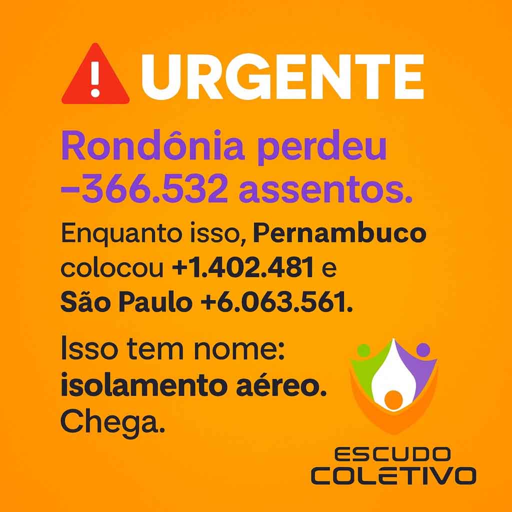 O recuo em voos e assentos se traduz em preços mais altos, menos horários e mais conexões, afetando trabalho, saúde e o desenvolvimento do Estado. “Rondônia não é destino de segunda classe. Dado não é opinião: com o Brasil reequilibrado em assentos e Rondônia no fundo do poço, estamos diante de um caso de exclusão que exige resposta firme das autoridades”, afirma Gabriel Tomasete, presidente da entidade.