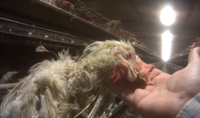 A Mercy For Animals (MFA) tornou públicas nesta quarta-feira, 02 de agosto, filmagens chocantes registradas por um investigador da organização em uma granja cuja produção abastece um fornecedor de ovos do Walmart. Os vídeos mostram milhares de aves confinadas em gaiolas imundas, tão espremidas que mal conseados veterinários adequados, enquanto corpos em decomposição são vistos apodrecendo nas gaiolas em meio a galinhas ainda botando ovos para consumo humano.