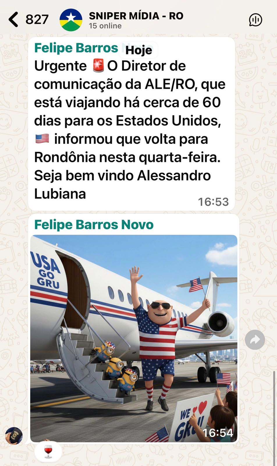 A viagem do diretor de Comunicação da Assembleia Legislativa de Rondônia, Alessandro Lubiana, aos Estados Unidos, iniciada em dezembro do ano passado, passou a ser comentada entre profissionais da imprensa após a confirmação de seu retorno ao Estado nesta semana. A permanência prolongada no exterior motivou manifestações e publicações em grupos digitais frequentados por jornalistas e proprietários de veículos de comunicação.