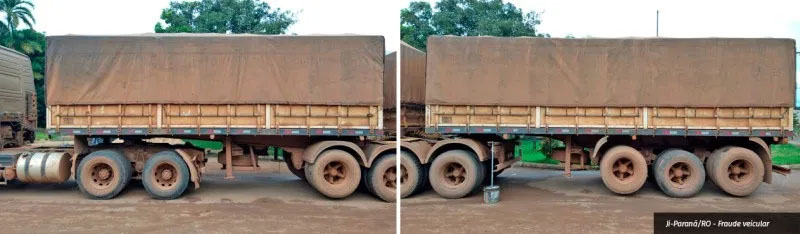 Ainda no sábado (28), no km 352 da BR-364, na Cidade de Ji-Paraná-RO, agentes da PRF que realizavam fiscalização de trânsito, encontraram vários indícios de divergências nos elementos identificadores, nos dois semireboques da combinação de veículo de carga que recebeu ordem de parada. Por meio de análise minuciosa, foi constada, de fato, adulteração na identificação do veículo, além de marcas de lixamento e regravação total dos caracteres em local distinto do original. O condutor foi encaminhado à Policia Civil pelo crime de adulteração de sinal de veículos automotor.