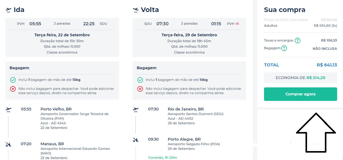 Os outros destaques são as passagens de ida e volta de Porto Velho para São Paulo por apenas R$ 507,89. Vale destacar ainda os bilhetes aéreos de ida e volta de Porto Velho para Salvador por R$ 929,37. Lembrando que a capital baiana reabriu bares e restaurantes e autorizou banho de mar e atividades esportivas
