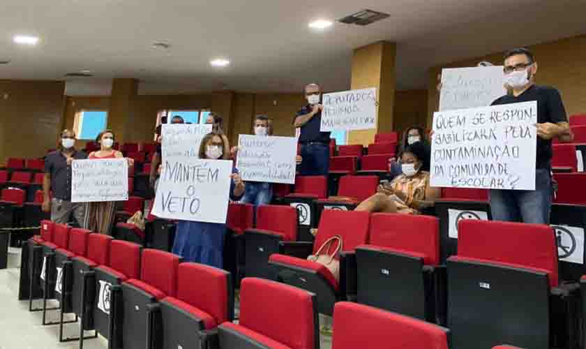 A análise feita ao veto do Governador Marcos Rocha é positiva e pode ser considerada consequência da grande movimentação feita pelo sindicato e pelos trabalhadores/as em Educação, que desde o início das discussões sobre o assunto ressaltaram que não são contrários ao retorno presencial, principal ponto defendido pelo parlamentar que propôs o PL para convencer a população a apoiar a ideia. No entanto, exigem que sejam proporcionadas condições mínimas de segurança para que o retorno se efetive sem apresentar risco à comunidade escolar, o que pode ser feito mediante elevação do número de pessoas vacinadas no Estado, com a completa imunização dos profissionais em Educação, além da utilização de protocolos de biossegurança nas escolas.